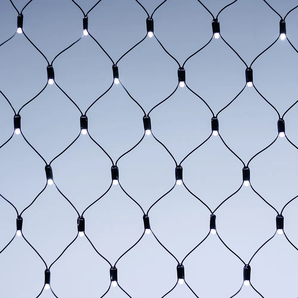 Светодиодная сеть Classic. 2000x1500 (длина 2000 мм, высота 1500 мм). Цвет свечения ТЕПЛЫЙ БЕЛЫЙ (3000 К). 288 светодиодов размером 7 мм со статическим и 8 динамическими эффектами свечения с резким световым рисунком (прозрачная вогнутая линза). Провод прозрачный, ПВХ. Питание 230 В, Мощность 18 Вт,защита IP65, применение в помещении и на улице под навесом Аксессуары для подключения и выбора режима свечения в комплекте.