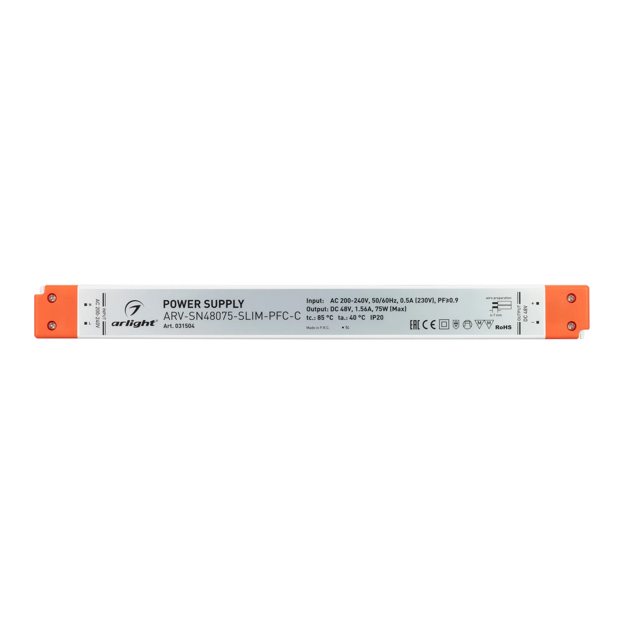 Блок питания ARV-SN48075-SLIM-PFC-C (48V, 1.56A, 75W) (Arlight, IP20 Пластик, 3 года)