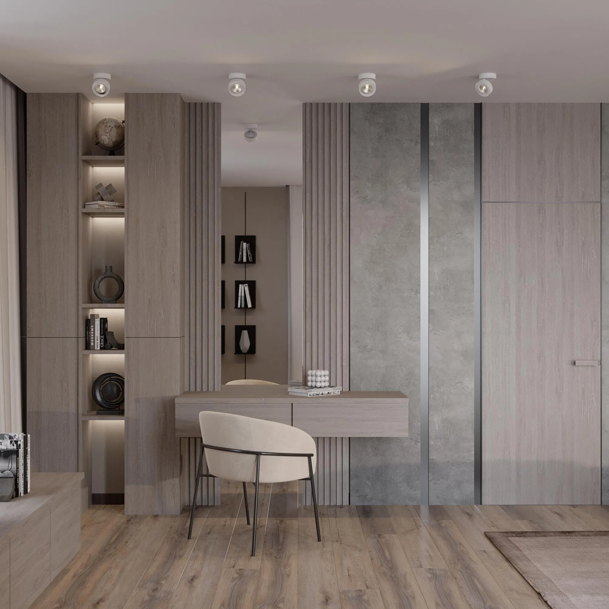 Светильник откидной для треков/шин 4 провода, 12Вт. Цвет свечения ДНЕВНОЙ 4000K, световой поток 770лм, CRI>90, угол свечения 24°, угол поворота 355°, угол наклона 90°. Корпус круглый, металл, цвет белый, IP40. Размер DxH Ø100x105мм. Питание AC 220-240V, 12Вт, драйвер встроенный (DC 300mA, 28-42V).