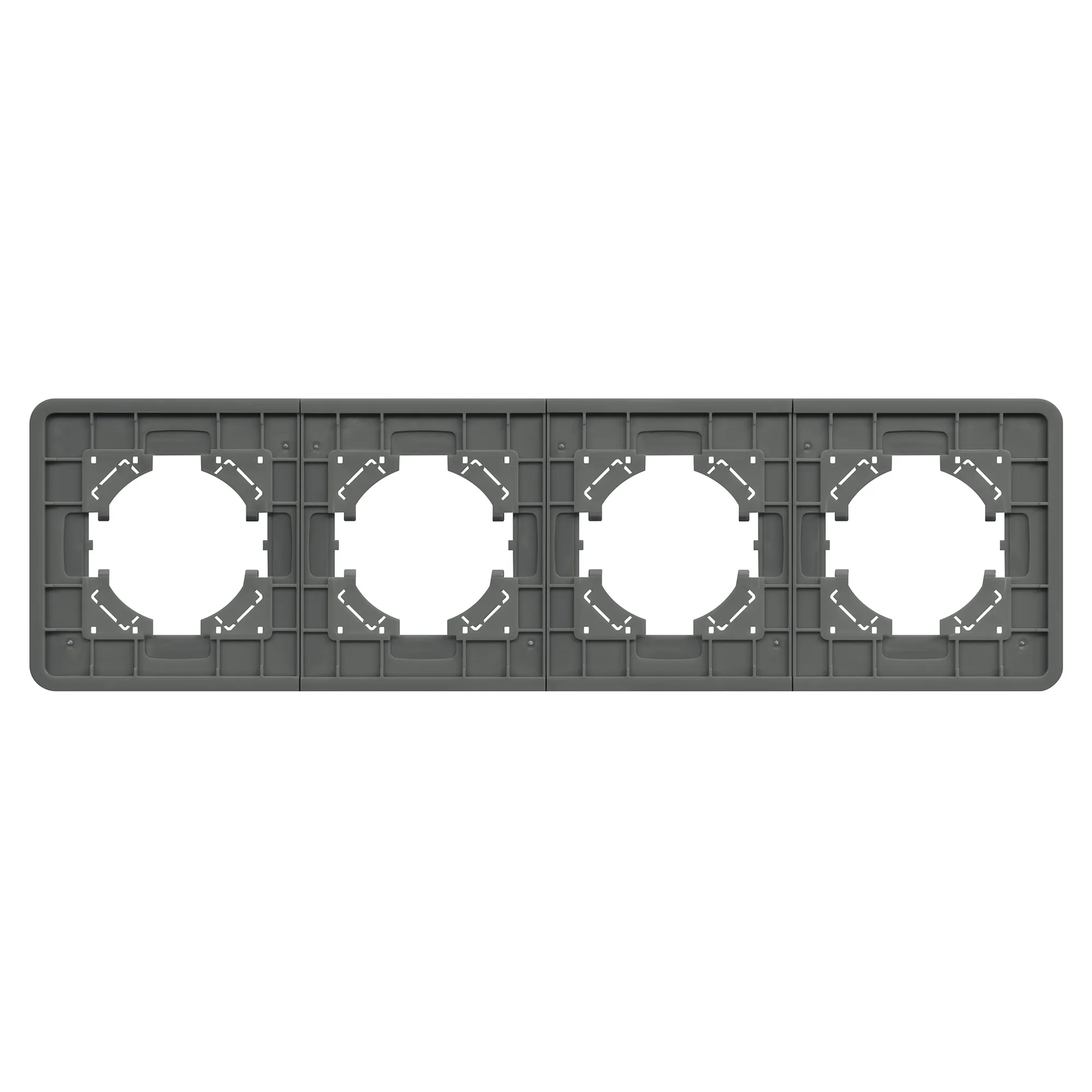 Рамка стеклянная на 4 поста, под встраиваемый механизм. Цвет - серый. Уровень герметичности IP20. Ориентация монтажа - горизонтальная (основным ориентиром служат посадочные выступы для накладки механизма).